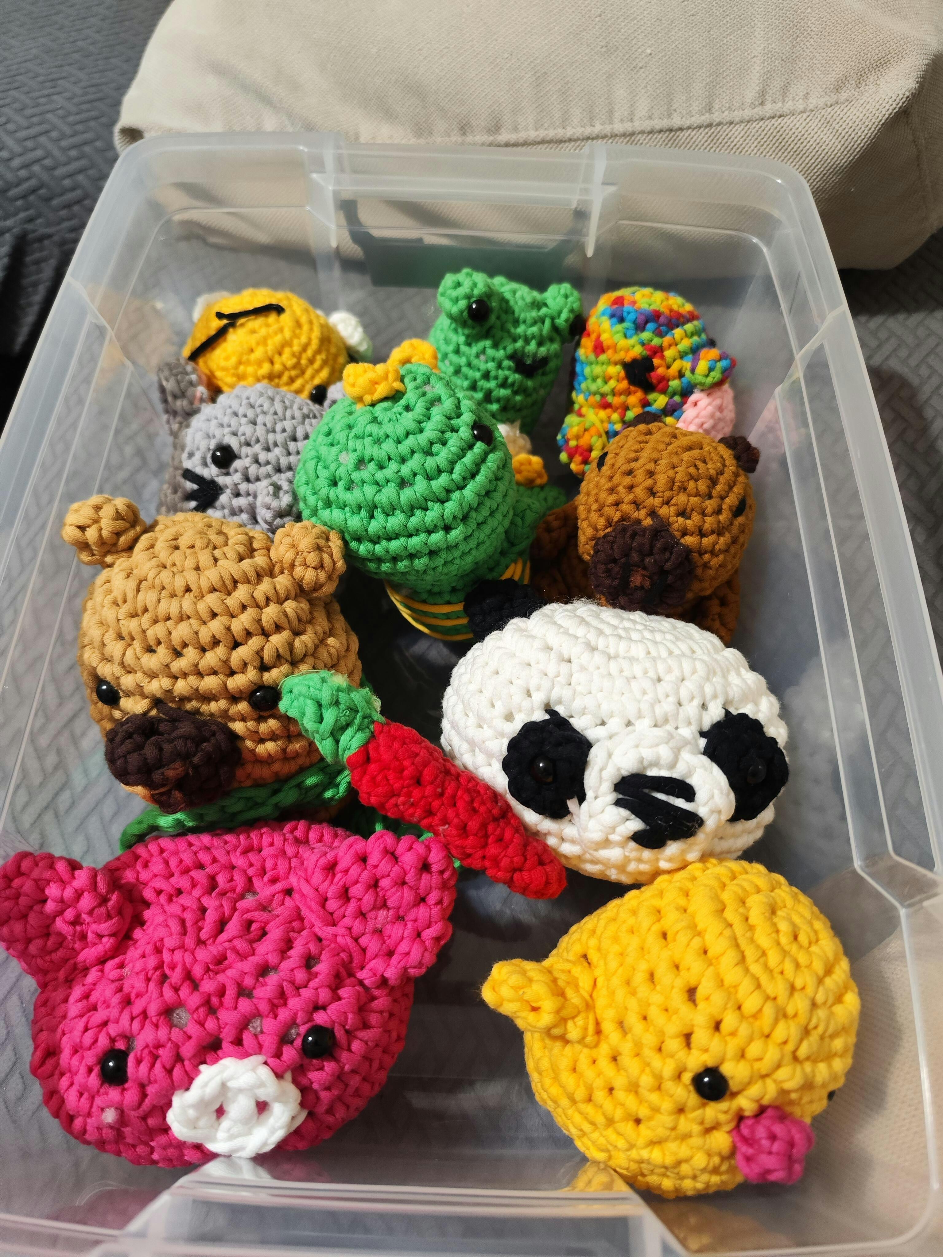 Чак не вярвам, че се получи, но успях от раз да изплета животинките. Сега съм пристрастена към плетенето на една кука.