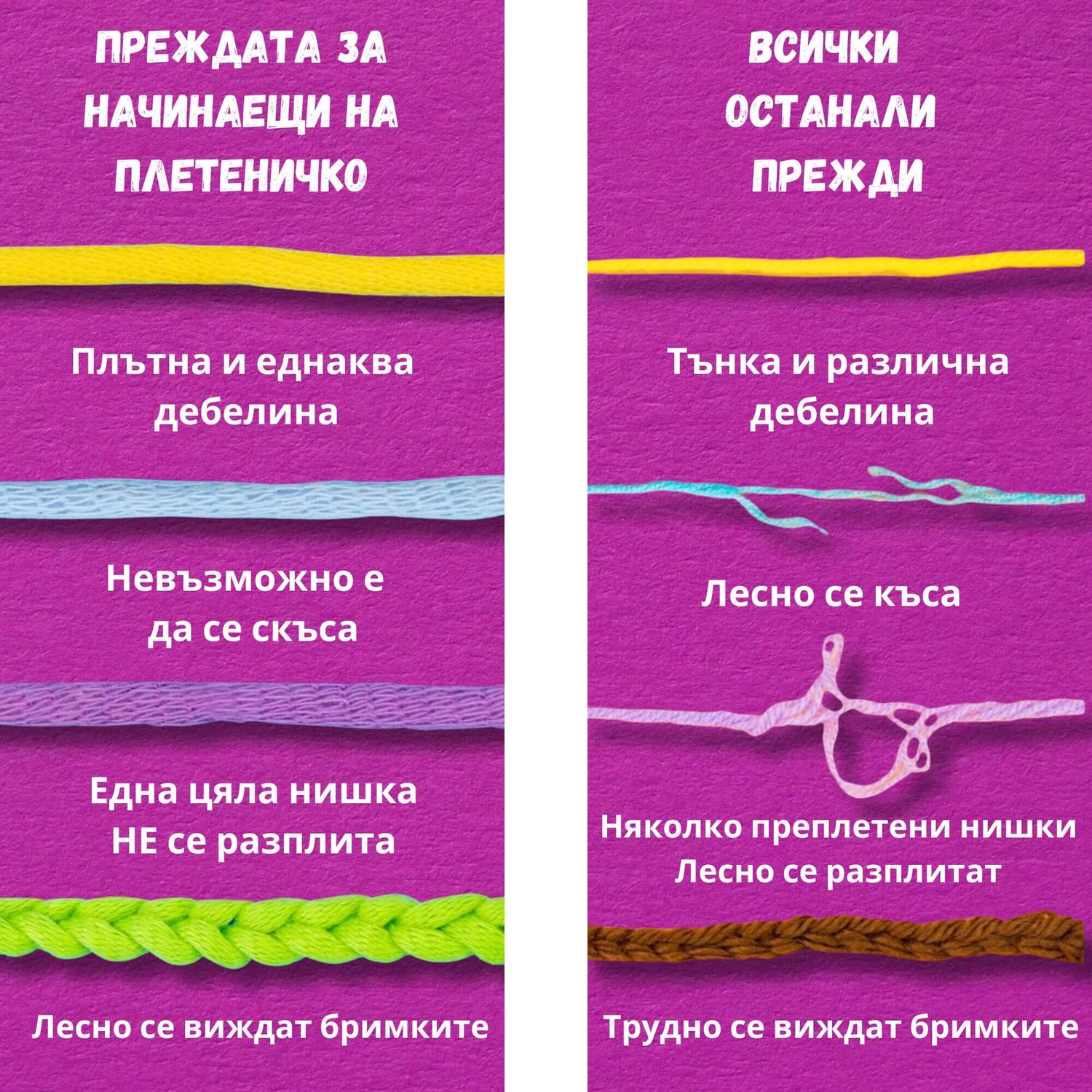 • Специална Прежда за Начинаещи, която не се къса или разплита и